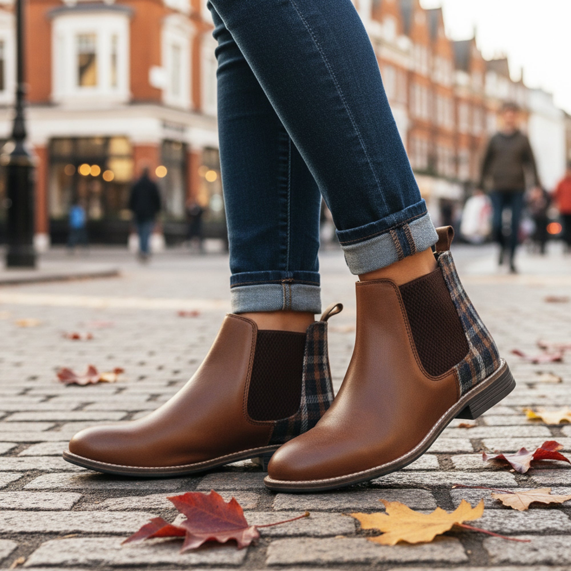 Sadie Leather Chelsea Boots - Tan Tweed