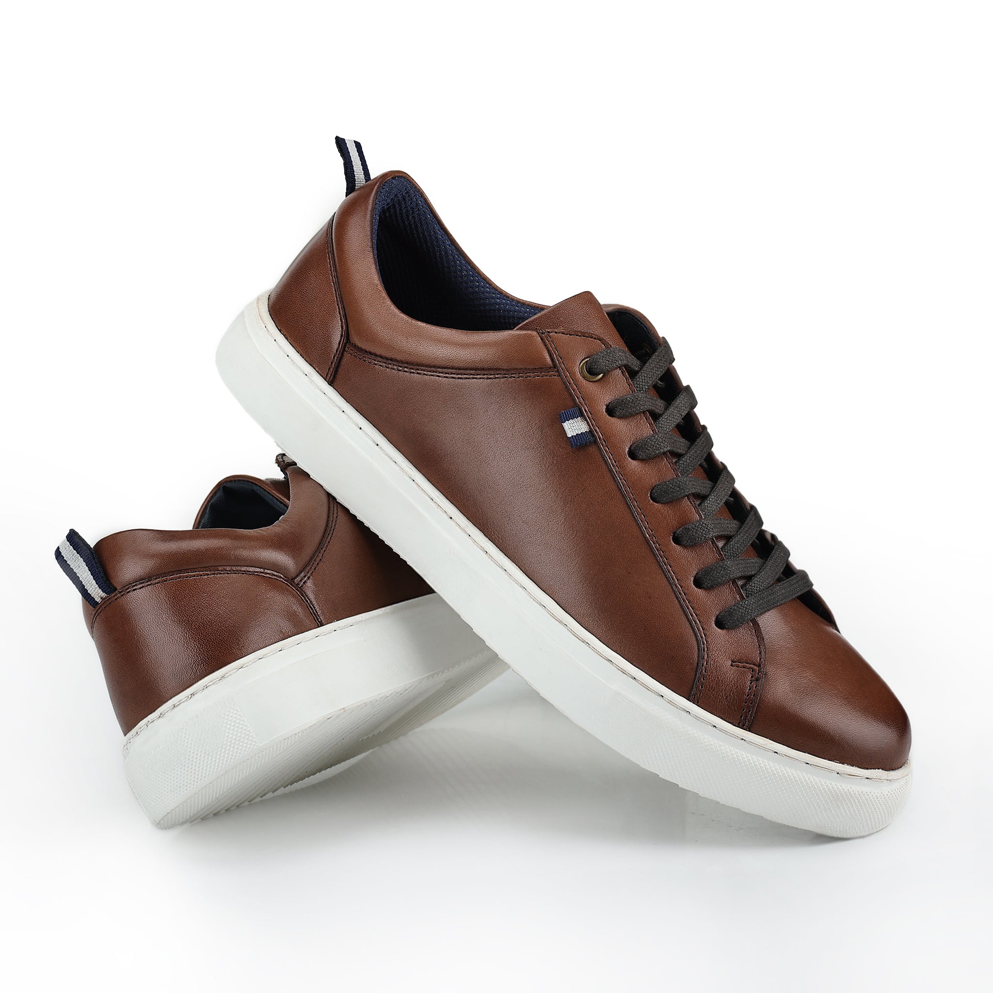 Effortlessly cool and endlessly versatile, the Holden Leather Cup Sole Trainers are your go-to for polished casualwear. Made from premium leather with a rich natural finish, these trainers are built on a contrasting white cup sole that adds a clean, modern edge. Subtle design accents, like tonal stitching and a pull tab, round off the minimal aesthetic.