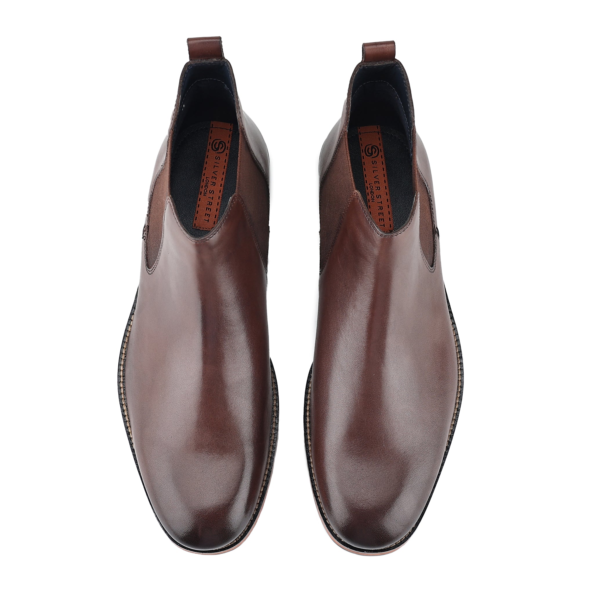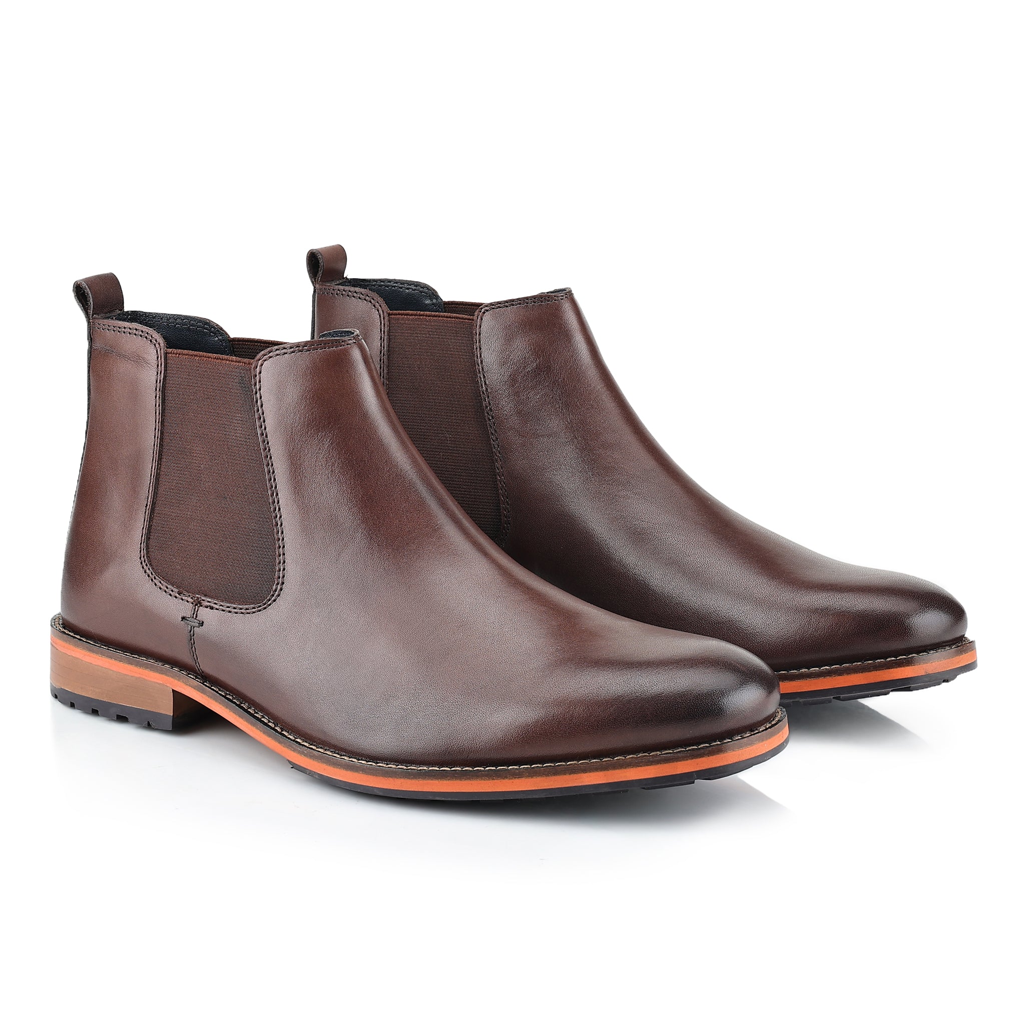 The Argyll Leather Mens Chelsea Boots are a sleek expression of timeless British style. Expertly crafted from smooth, polished leather, these mens boots showcase the classic Chelsea silhouette with elastic side panels and a rear pull tab for effortless wear. A subtly contrasting sole adds a modern edge, while the almond toe shape and minimal stitching keep the look clean and refined.