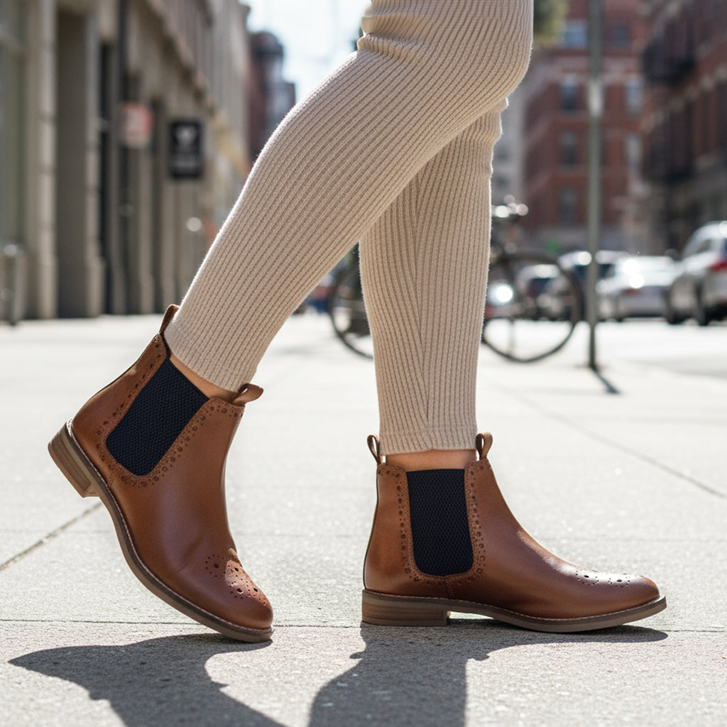 Zoey Leather Brogue Boots- Tan